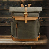 Choose from a nature-inspired color palette reflecting earth, forests, and lakes. The Premium College Bag combines minimalism with retro fashion, featuring a large front zippered pocket, a secret back pocket, and two buckle straps to secure your belongings. Its expandable roll-top opening allows for additional storage as needed.