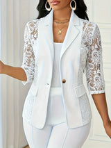 Elevate your everyday style with our Blazer, the perfect blend of elegance and ease. The single-button placket and semi-sheer contrast lace details add a touch of sophistication, making it ideal for layering during spring and fall seasons.