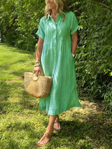 With its classic collar, short sleeves, and button placket at the front, you get a look that is both polished and naturally relaxed – perfect for everything from picnics to summer parties.